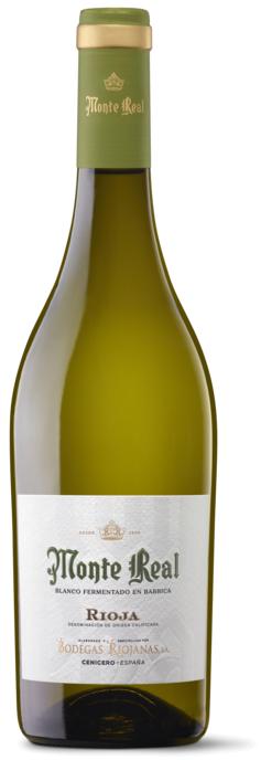 Para la elaboración de Monte Real Blanco Fermentado en Barrica se utilizan uvas de la variedad viura (80%) y malvasía de parajes expresamente seleccionados en Cenicero (Rioja Alta) para asegurar la calidad que caracteriza al vino de Bodegas Riojanas.