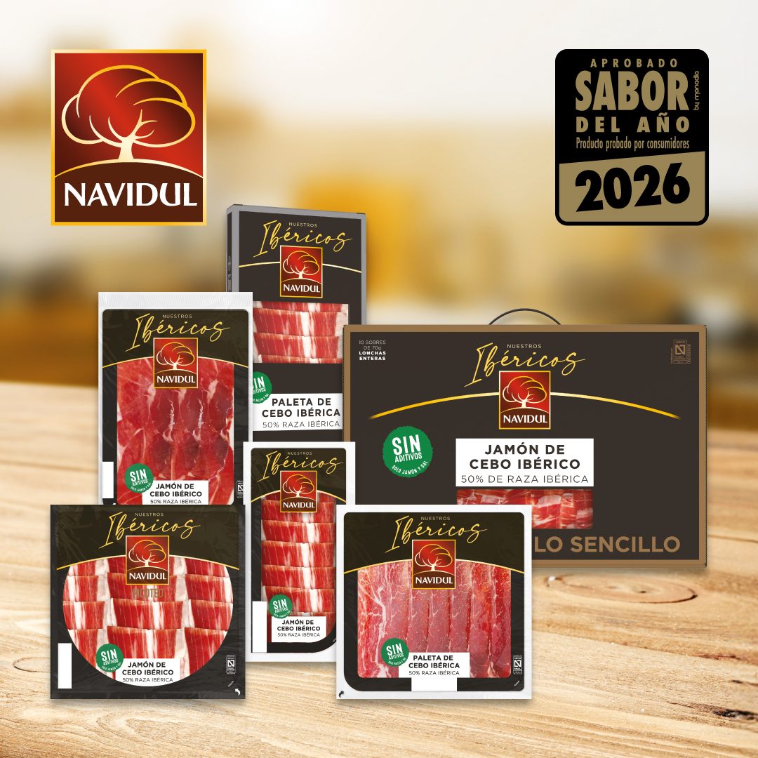 Navidul ha vuelto a ser reconocida con el Premio Sabor del Año Gourmet 2026 para su gama de jamón y paleta ibérica de cebo 50% ibérico, reafirmando su liderazgo en sabor dentro de la categoría.