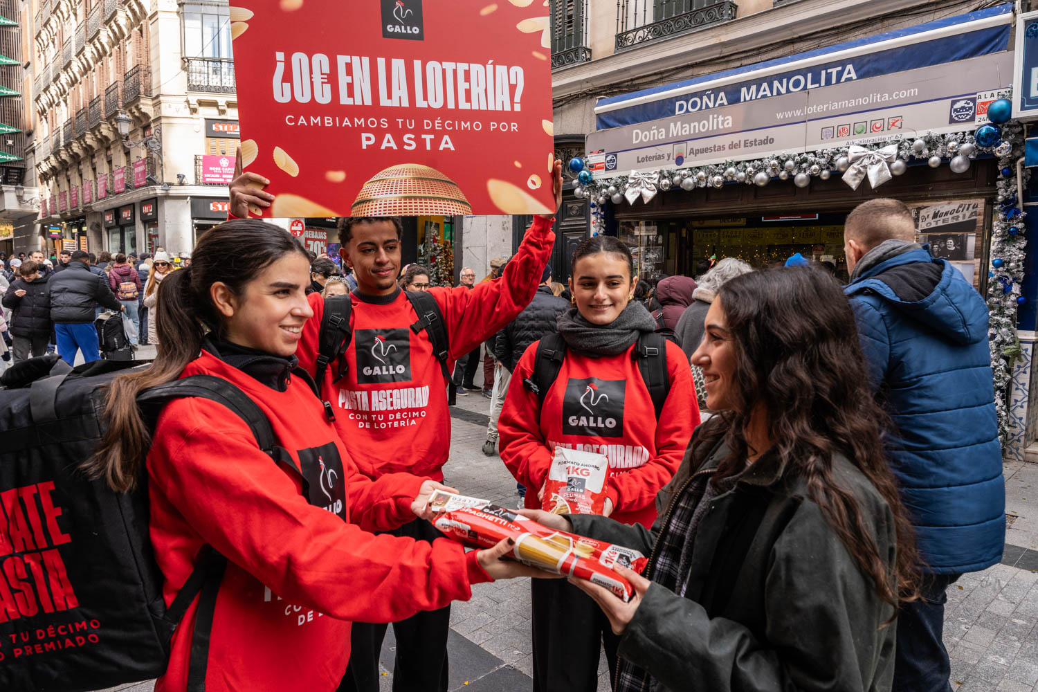 - Con “Pasta Asegurada” Gallo capitaliza el sorteo de la Lotería de Navidad con una acción especial en el centro de Madrid, regalando pasta a todas las personas que presentaron su décimo no premiado durante el día del sorteo.