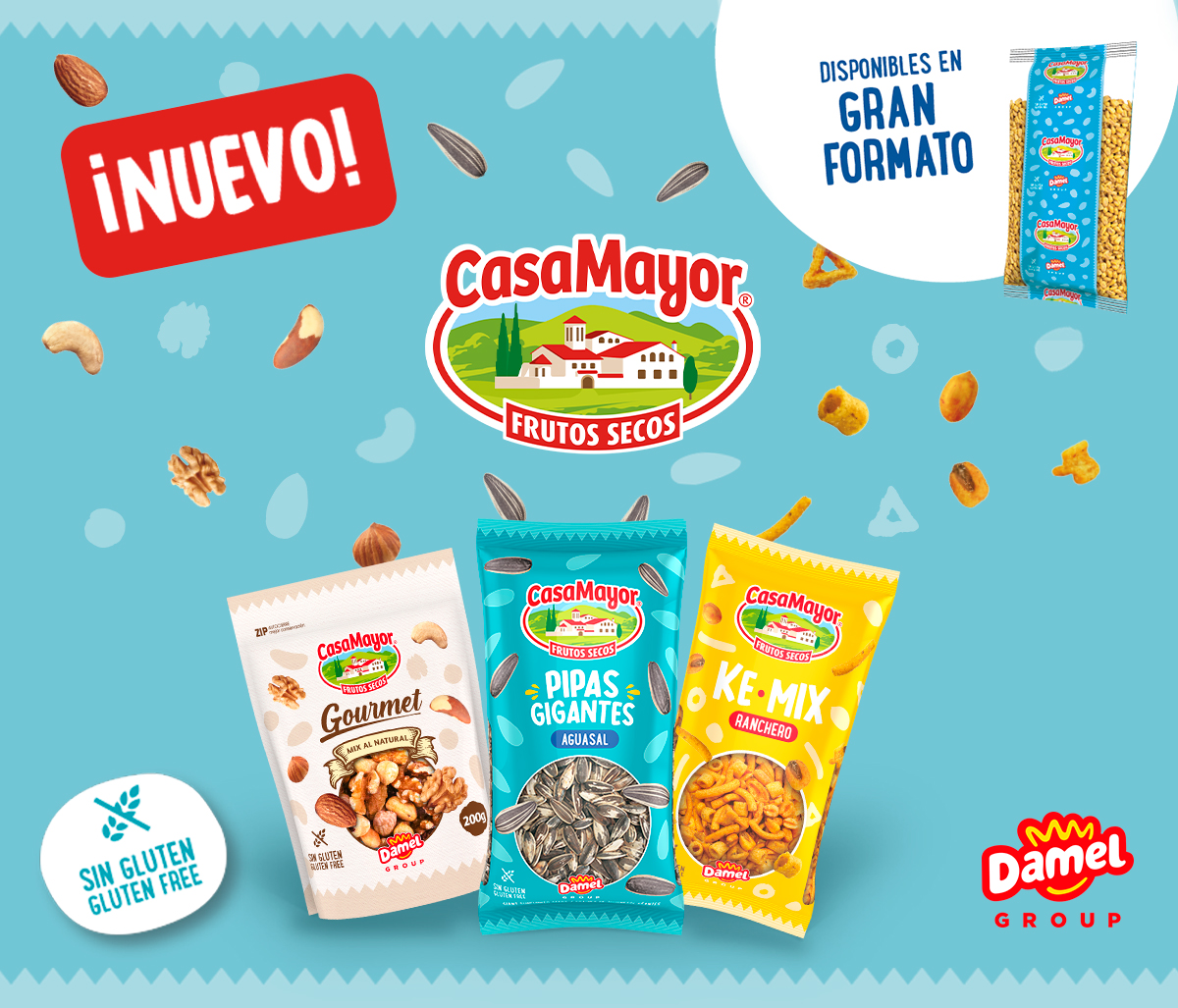 Como apuesta premium, CasaMayor incorpora por primera vez una línea Gourmet en formato tipo doypack, que ofrece frutos secos seleccionados entre las materias primas más premium de las gamas nobles, como almendras, nueces o mixes elaborados o naturales, en línea con las tendencias del mercado.