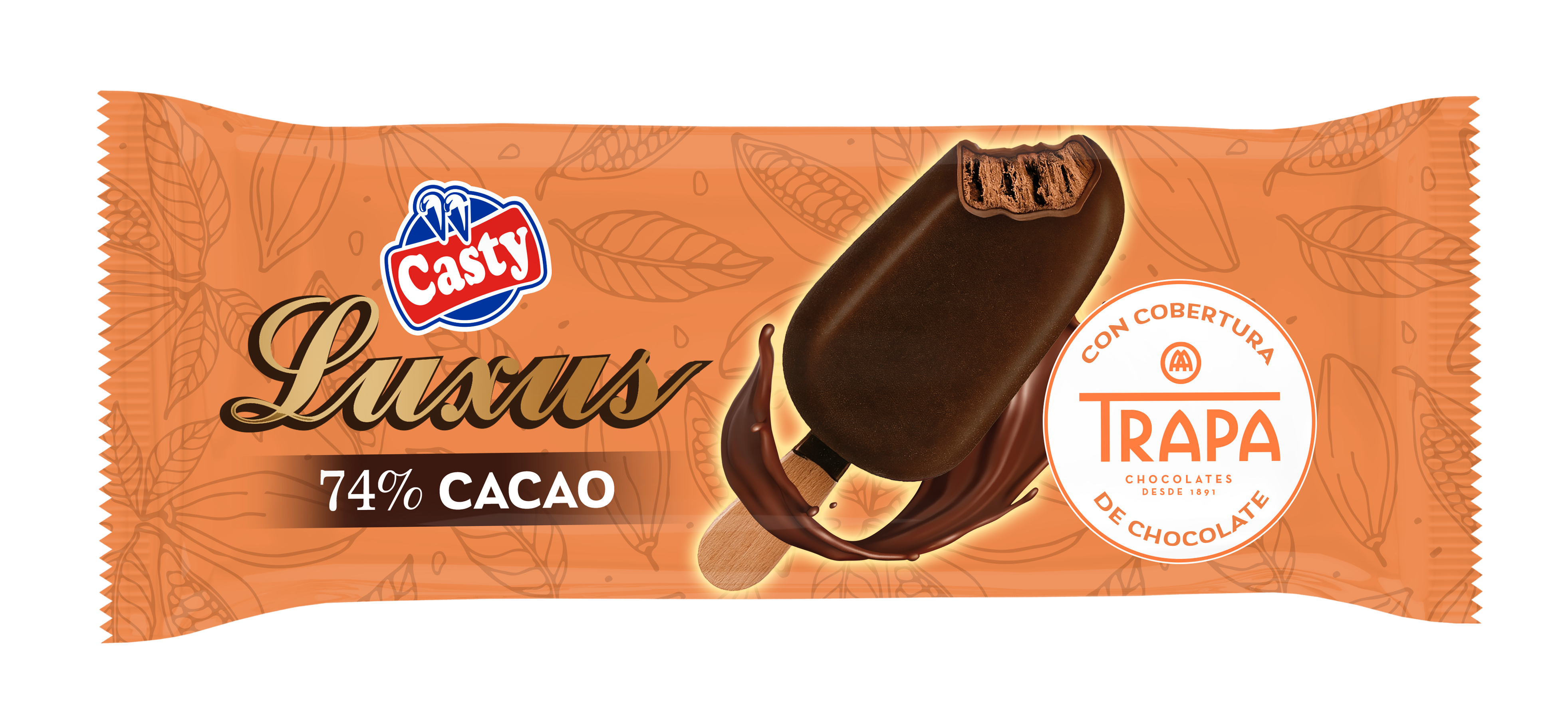 Con motivo de su 135 aniversario, Chocolates Trapa refuerza su apuesta por las colaboraciones con marcas españolas con historia y valores compartidos y se alía con Helados Casty, referente nacional, para lanzar Luxus 74% Cacao by Trapa, un nuevo bombón helado de chocolate pensado para los auténticos amantes del cacao. Estará disponible en tiendas de barrio, supermercados y canal HORECA esta primavera ampliando así las ocasiones de consumo y acercando esta colaboración a un público amplio y exigente. Se trata de una colaboración muy especial que coincide con una doble efeméride: los 135 años de historia de Trapa y el 35 aniversario del bombón Luxus, el producto más premium e icónico de Helados Casty. Dos marcas familiares, con décadas de trayectoria, se unen así para rendir homenaje a la calidad, la artesanía y el sabor de siempre.