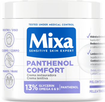 La piel con tendencia atópica causa mucha picazón, por eso necesitas una crema que reduzca los picores, la sequedad y las rojeces. PANTHENOL COMFORT cuenta con un 13% de pantenol, glicerina y omega 6&9 para aportar frescura a tu piel.