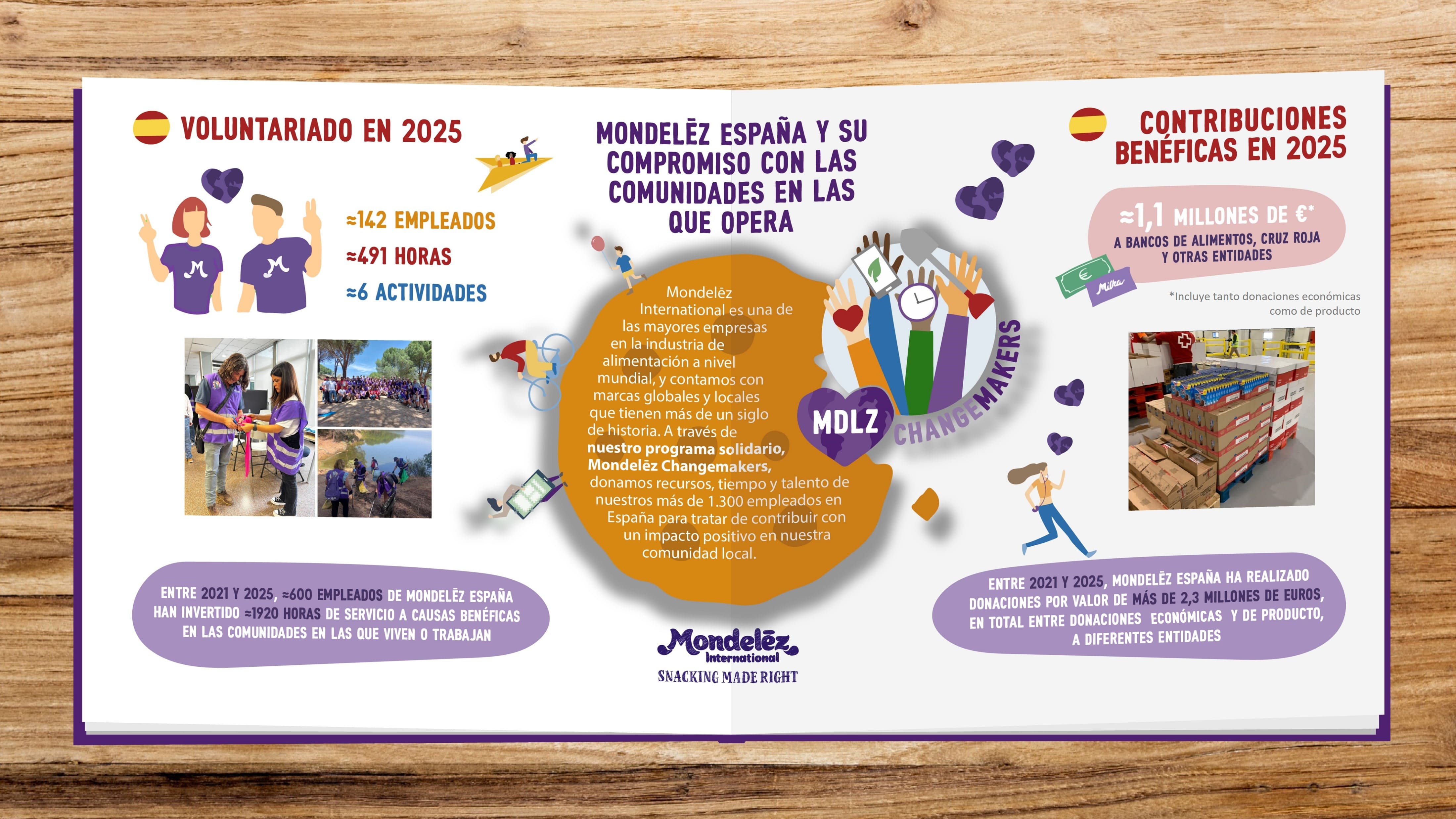 - A lo largo de 2025, 142 empleados de Mondelēz España han dedicado un total de 491 horas de voluntariado a iniciativas sociales y medioambientales desarrolladas junto a entidades como Cruz Roja, Fundación PRODIS, Fundación Finestrelles o el Comedor Social San Simón Rojas.