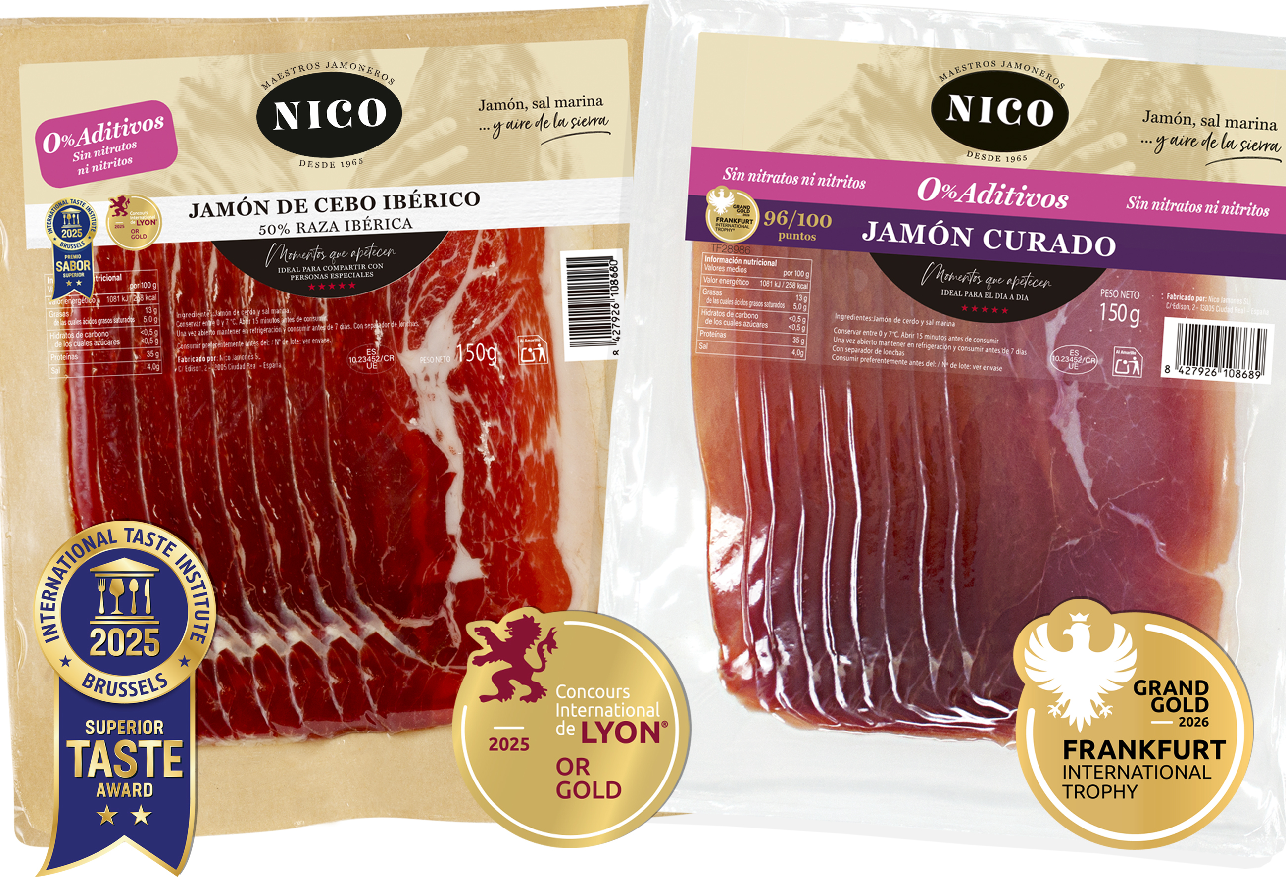 En un contexto en el que el consumidor demanda cada vez más productos de etiqueta limpia, saludables y transparentes, Nico Jamones consolida su liderazgo en la categoría con un hito poco habitual: tres premios internacionales en tan solo 12 meses para su gama de jamón curado e ibérico 0% aditivos (sin nitritos ni nitratos añadidos), evaluada mediante catas a ciegas por jurados profesionales.