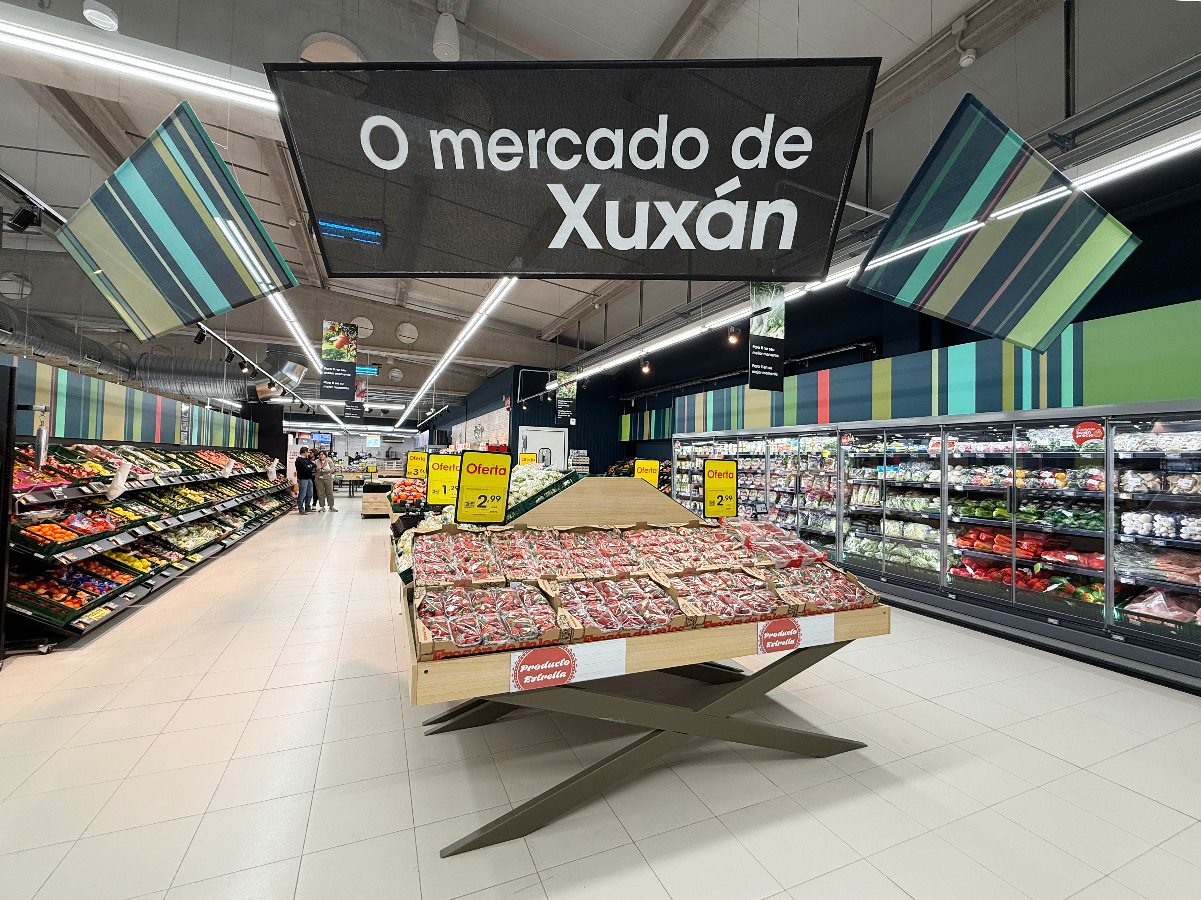 Este nuevo Eroski Center Xuxán está adaptado al modelo comercial “Contigo” que se caracteriza por ofrecer una gama especialista en alimentos frescos, por su apuesta por los productos locales, la atención personalizada y el ahorro en la cesta de la compra diaria con el programa de fidelización EROSKI club.