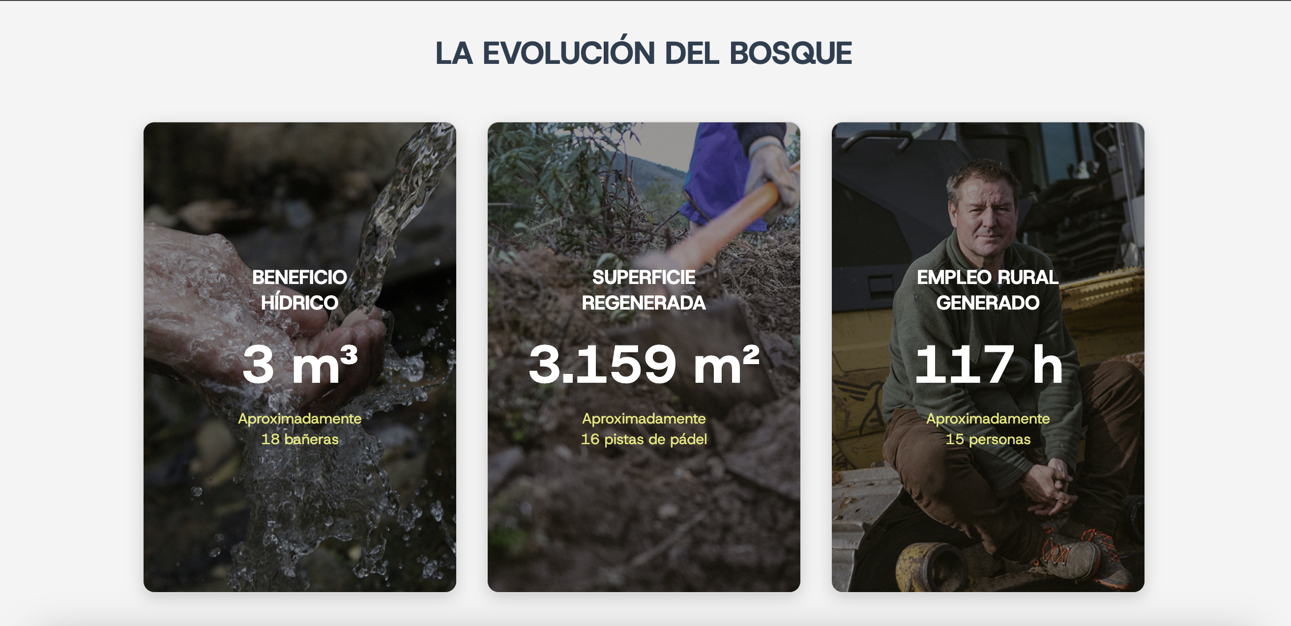 ● Impacto ambiental: 3.159 m² de superficie regenerada, 3 m³ de agua beneficiada (aprox. 18 bañeras), control de erosión, restauración de suelos degradados y creación de hábitats para fauna local como abejas, corzos, gamos, jabalíes y muflones.