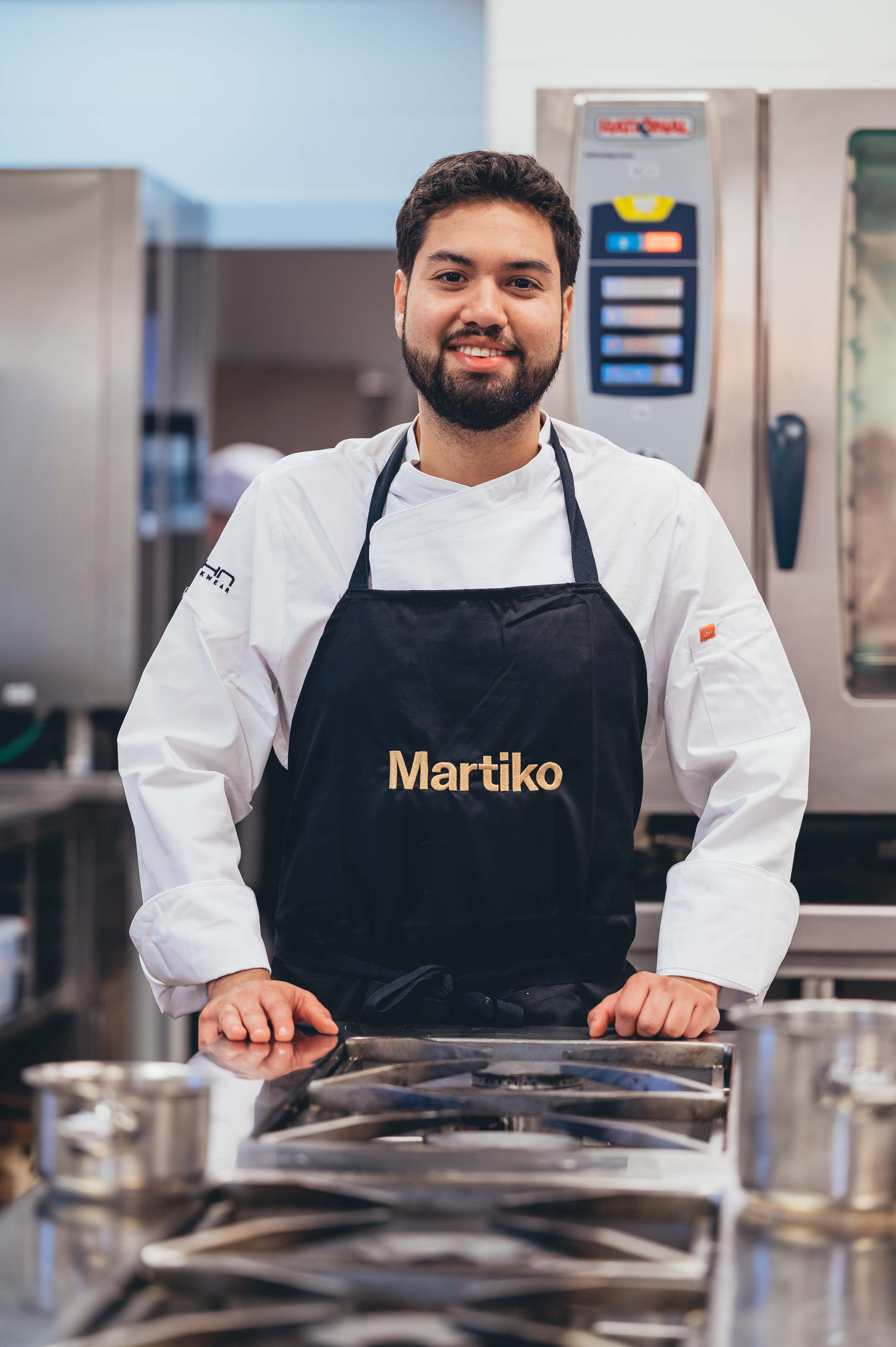 Miguel Patricio González Campos, 22 años y natural de Yucatán, México, presentará el plato “Ofrenda a Martiko”, inspirado en el juego de pelota maya y la ceremonia del cacao. Del Reto Martiko destaca la oportunidad que le ha dado de impulsar su creatividad y que es un desafío. Miguel Patricio ha elegido estudiar esta carrera porque cree “que en los últimos años el vínculo común más grande en el mundo es la gastronomía, me gusta expresarme a través de ello”.