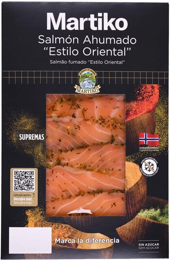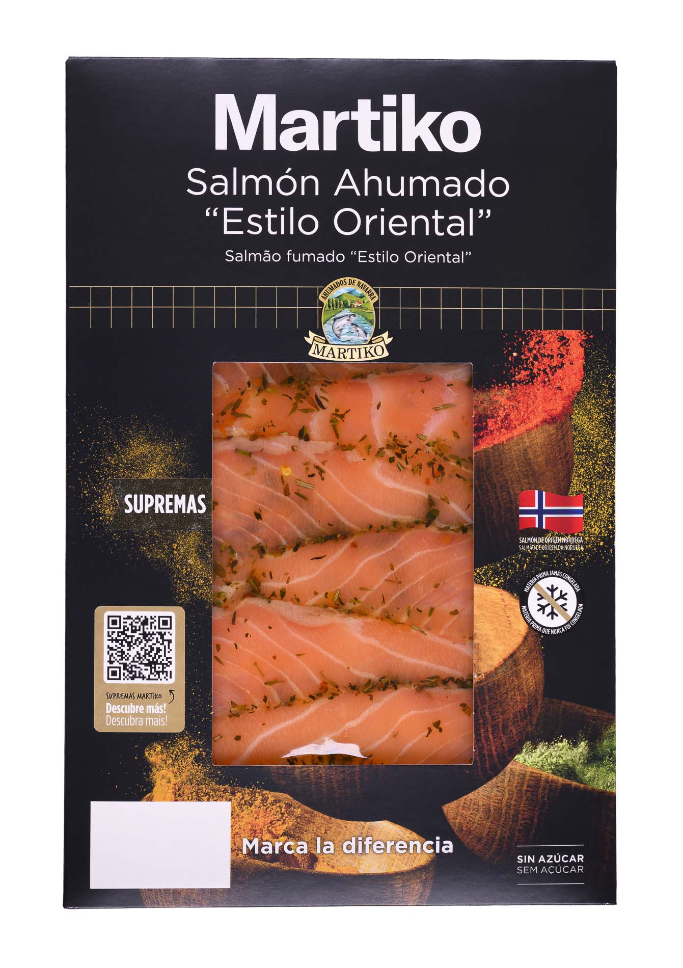 La compañía de alimentación Martiko ha apostado por una nueva referencia de salmón ahumado, resultado de su constante innovación por adaptarse a los gustos de los consumidores. Se trata del Salmón Ahumado Estilo Oriental, con lo que la compañía amplía su apuesta por las variedades de salmón ahumado, el gran protagonista en sus productos de mar, con las denominadas Supremas de Salmón Martiko.